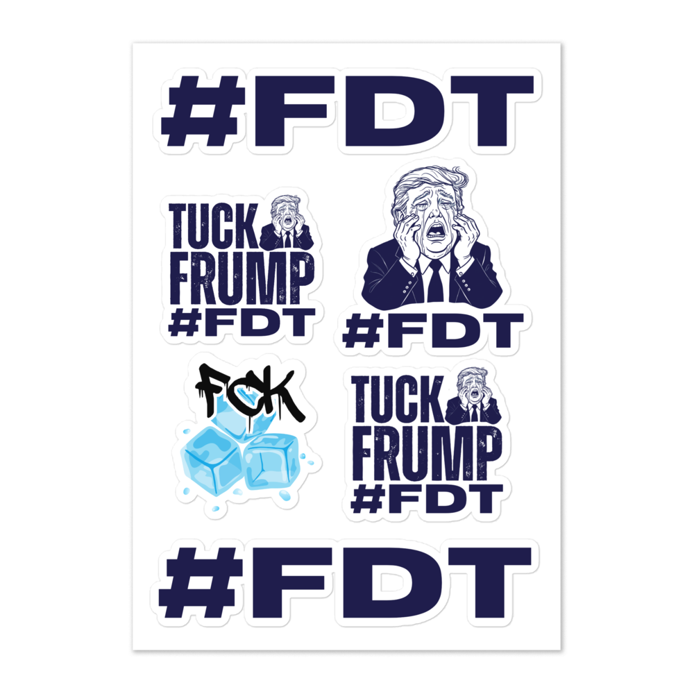 Get the ultimate sticker squad with this Tuck Frump Sticker Sheet, featuring #FDT stickers, Tuck Frump stickers, and a FCK-ICE sticker — perfect for adding a little humor and sparkle to all your favorite items. 😎 Whether it’s your laptop, notepad, or phone case, these glossy stickers give your stuff an extra pop of personality.