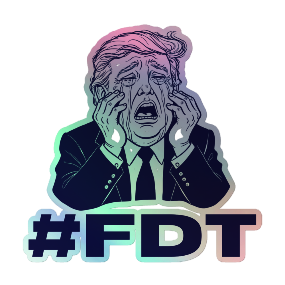 Add a little sparkle (and a few tears) to your life with this #FDT holographic sticker — featuring our favorite “fabulous” former president in full meltdown mode. 😭✨ Made from premium vinyl with a mesmerizing holographic finish, it’s the perfect way to let your sense of humor shine.