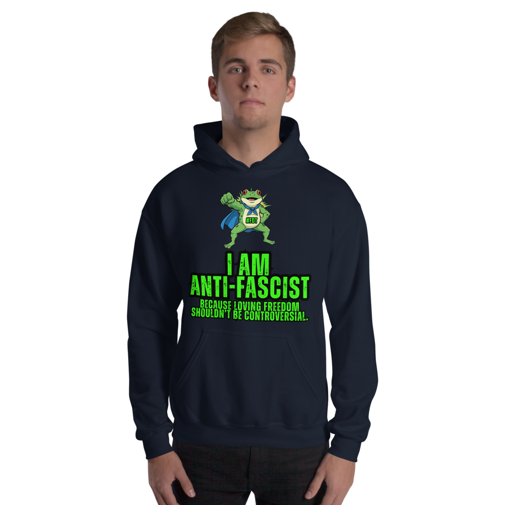 This one makes a statement without shouting. The “I Am Anti-Fascist” hoodie is for people who believe in liberty, equality, and basic human decency — not dogma, division, or hate. It’s a calm reminder that being against fascism just means being for freedom.