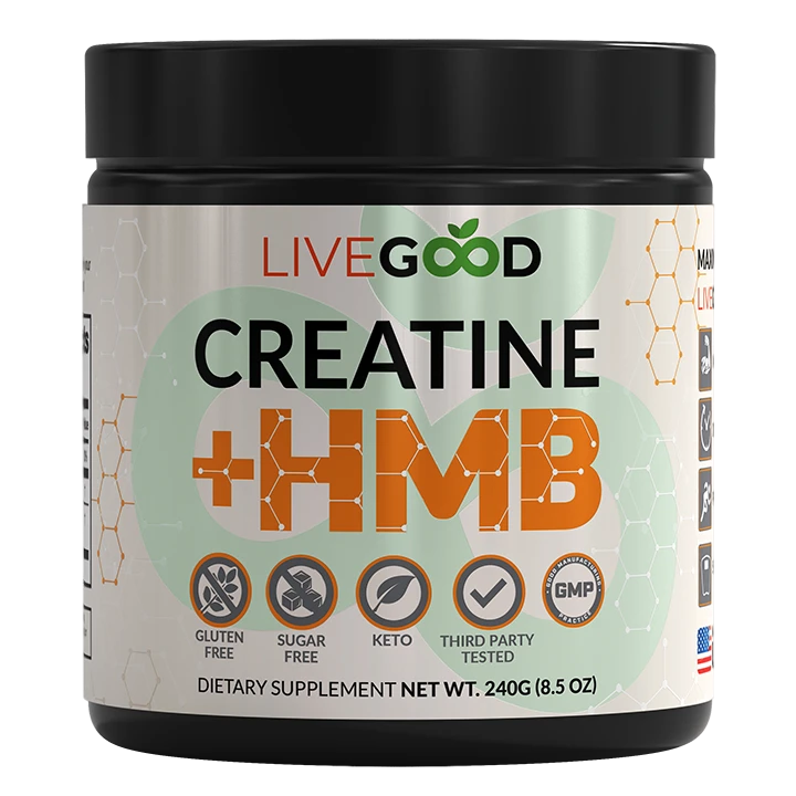 It is fuel for our muscles, our brain, and our heart. Our bodies make some of it but most of it comes from our diet and we are not getting enough on a daily basis. Because of that, we are not providing the proper amount of fuel to our muscle tissues, our brain, our heart and other tissues which can lead to muscle loss, cramping, poor metabolism and slower brain processing speeds. Our bodies need creatine to survive! As we age, our muscle mass continues to decrease. This eventually leads to other ailments such as sarcopenia, insulin resistance, loss of energy and libido, weak bones, limited mobility, loss of concentration, poor sleep, dehydration and more. LiveGood’s Creatine + HMB provides the extra fuel for your muscles to do more work and slow down age related muscle loss and cognitive decline.